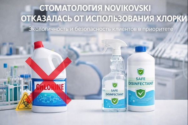 Отказ стоматологии NOVIKOVSKI от использования хлорсодержащих дезинфицирующих средств является осознанным и принципиальным решением, основанным на современных научных данных и человекоцентричной философии. Несмотря на то что безопасные альтернативы требуют больших финансовых затрат, клиника делает выбор в пользу здоровья и благополучия людей.